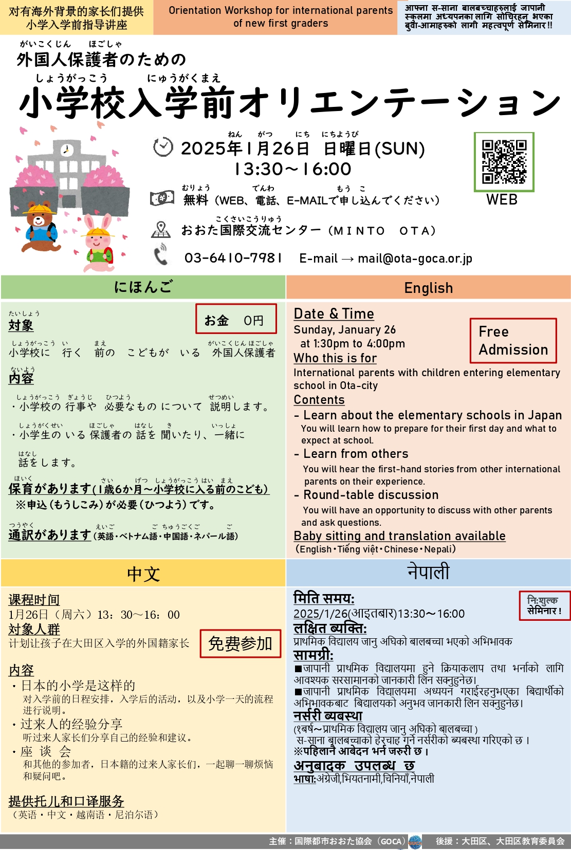 | 通訳あり | 英語(English)、中国語(簡体)、ベトナム語(Tiếng việt)・ネパール語(नेपाली) |