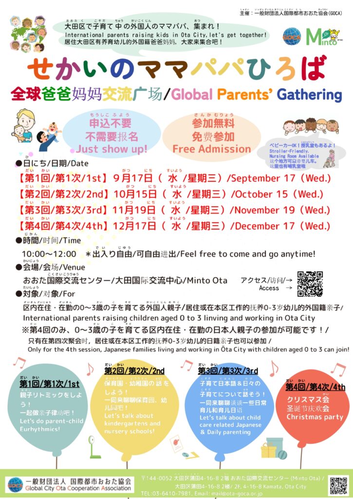外国につながりのある小さなお子さんとお母さんとお父さん、一緒におしゃべりしたり、情報交換したりしませんか?