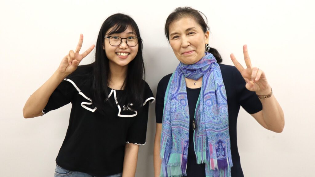 取材を通して、私は「未来へ」という歌を初めて知りました。ニンさんの語り口からは、日本語との出会いが人生の大きな転機となり、夢へと一歩ずつ進んでいった様子が伝わってきました。 日本に来た時は、コロナの影響で大学入学に必要な試験が中止されていつ再開するかわからない中、勉強を続けたニンさんの努力が実ってよかったです。