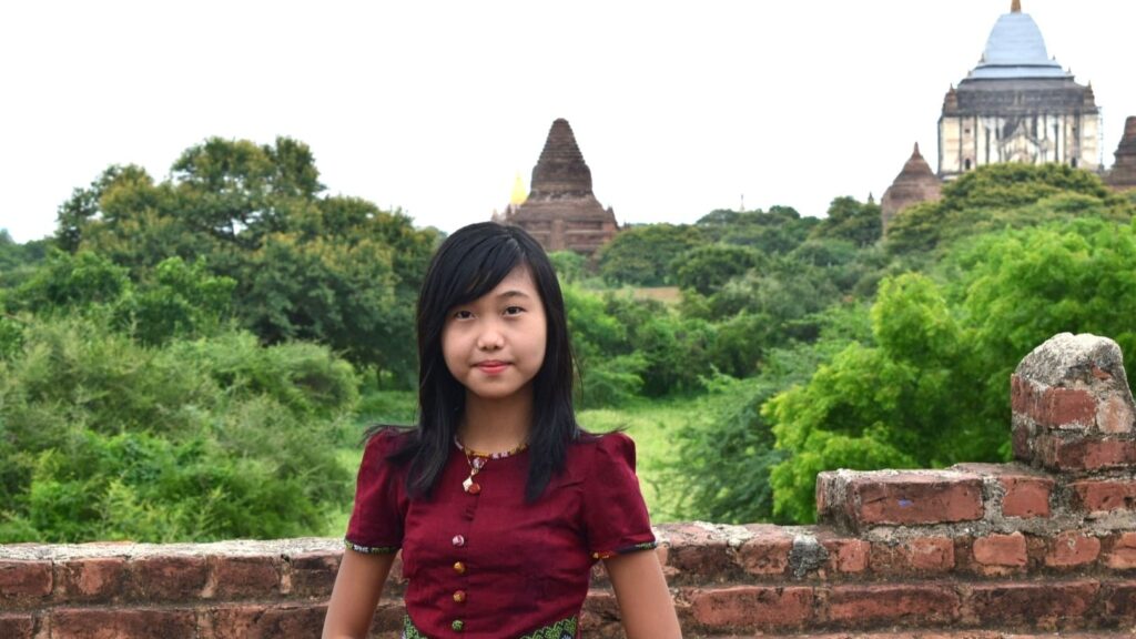 「こども学習支援教室のアシスタントとして初めてきた時、皆さんが「ニンさん」と呼び掛けてくれて、驚きました。覚えにくい外国人の私の名前を、皆さんが知っていて嬉しかったです。私も皆さんの名前を早く覚えられようになりたいです。こども学習支援教室では、こどもへの教え方、こどもたちの側から見るとどうなのか知ることができ、勉強になります。世界のアートテーマの企画展示も、その展示に合わせた冊子も、GOCAのご担当の方が作ってくださいました。私はその中の母国ミャンマーの部分で、バガン寺院を紹介するコメントを書き、お手伝いさせていただきました。バガン寺院は、日本の京都のように、ミャンマーの古い寺院や伝統が残っていて、歴史を感じる場所です。そのため、このような冊子を作成していただき嬉しいです。」
