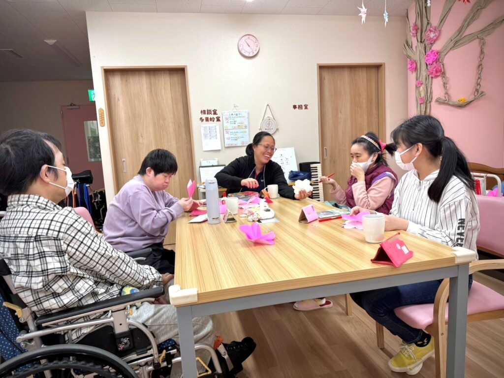 デイケア施設にて利用者と