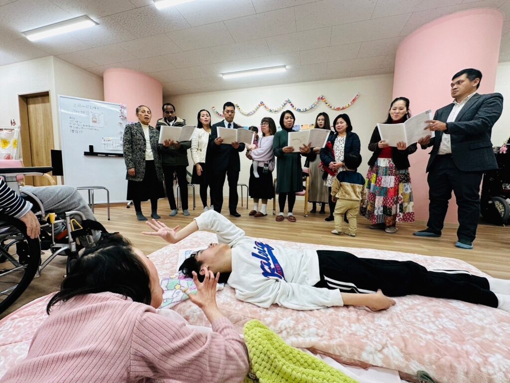 デイケア施設にて教会の友人とコーラス