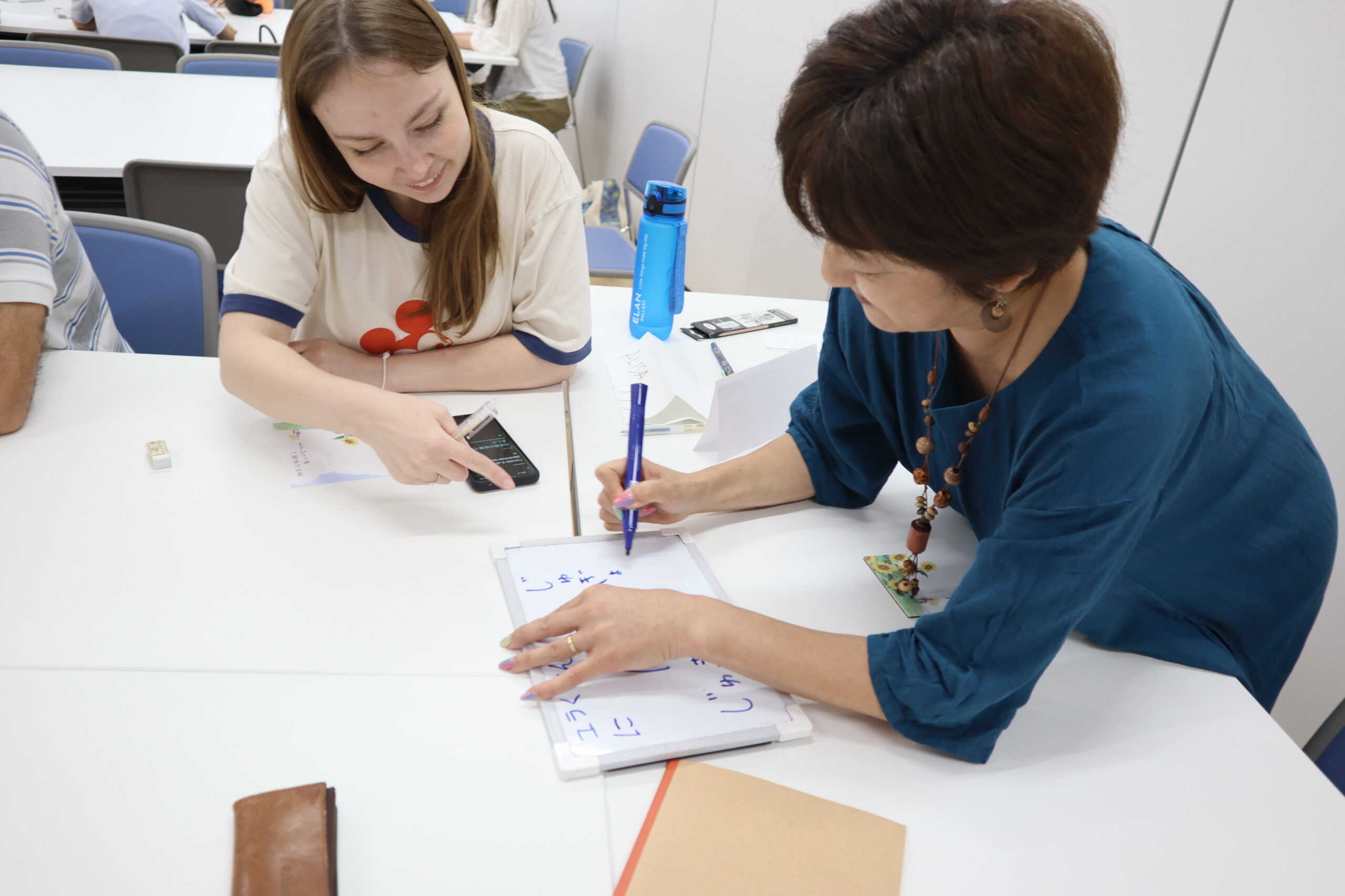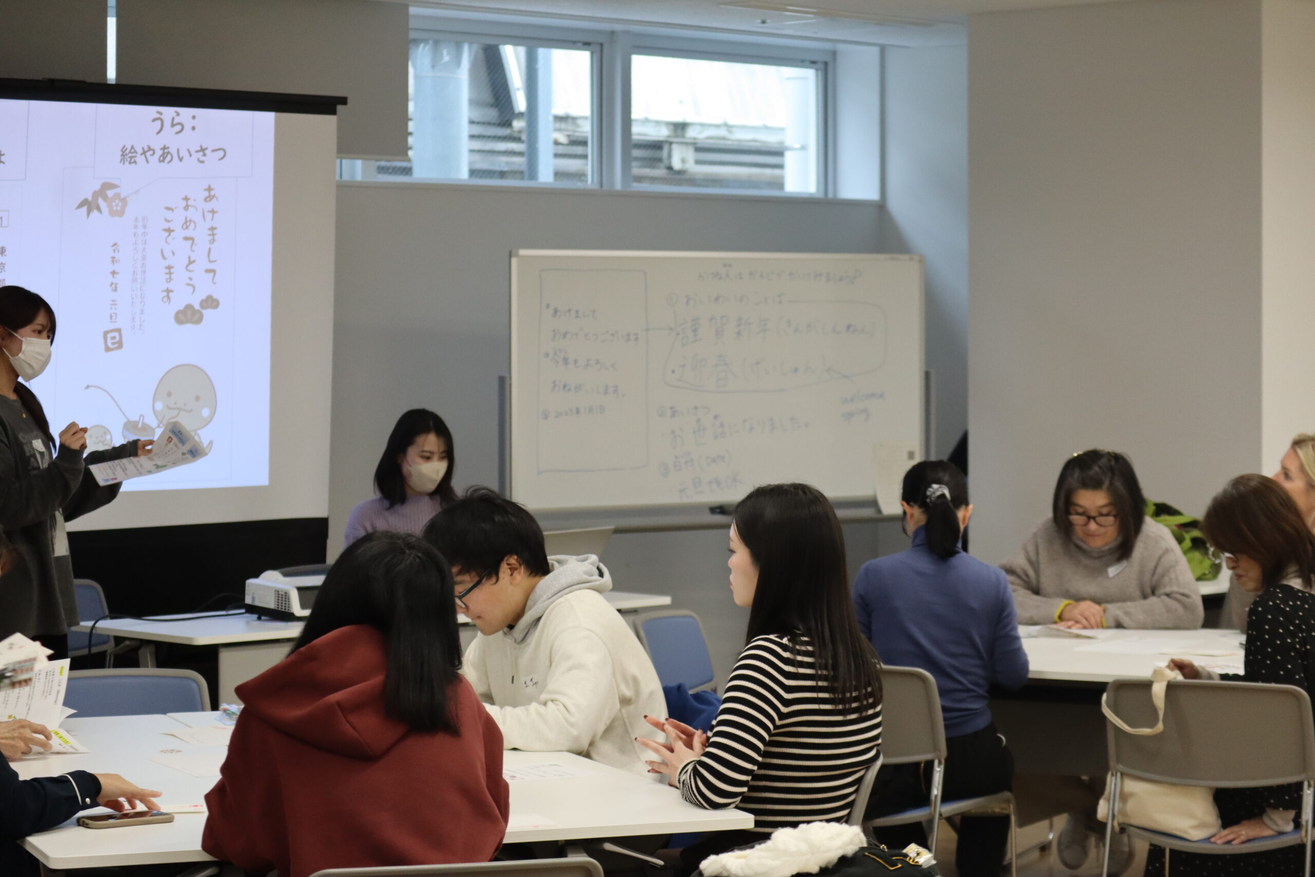 みんなで年賀状を実際に書いてみました! 書いた後は、お菓子を食べながら、交流を深めました。