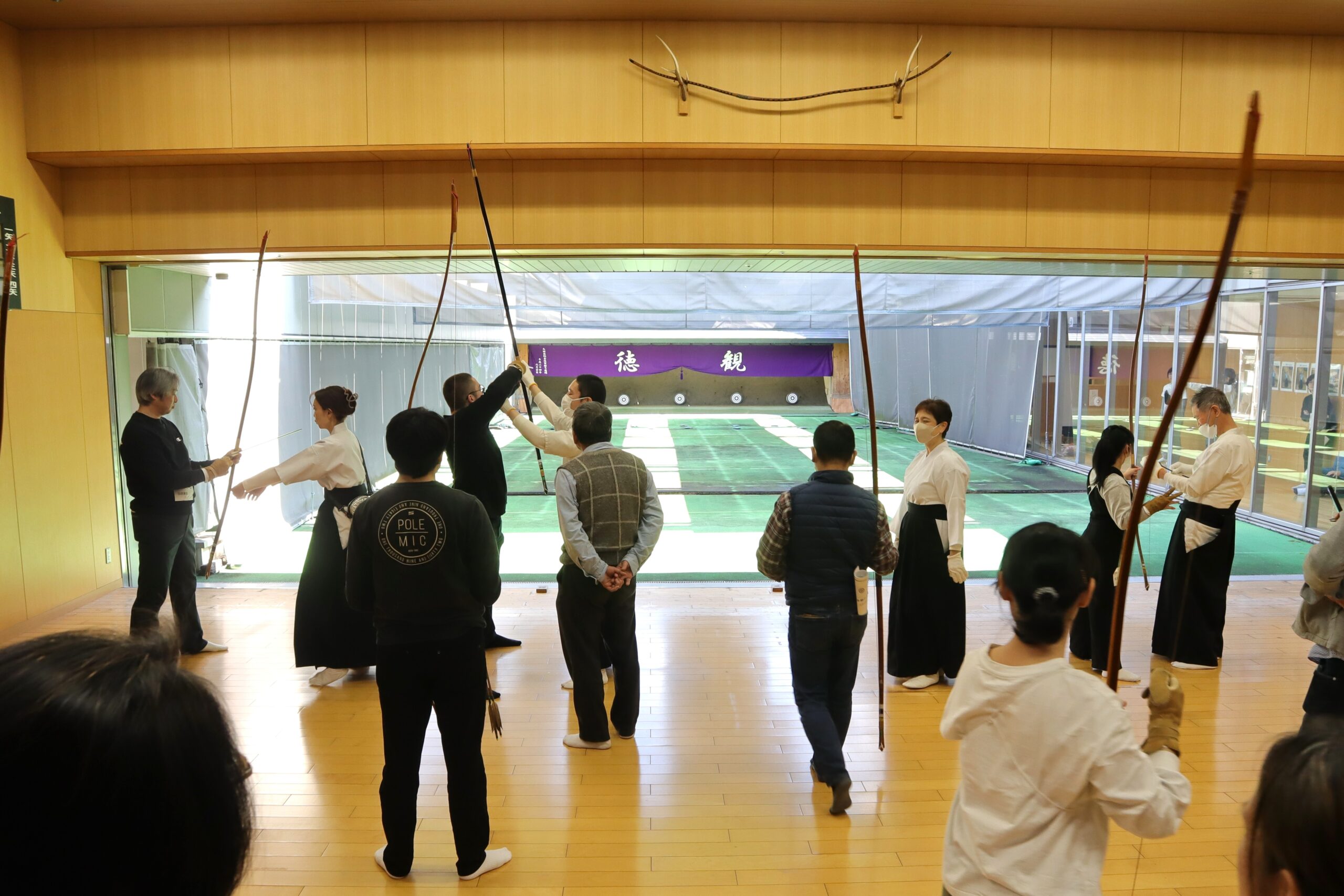 イベントでは、大田区弓道連盟の皆様による丁寧なご指導のもと、弓道の基本動作や所作を学びながら、実際に的を狙う体験をしていただきました。初めて弓を手にする方も多く見られましたが、皆様真剣な表情で取り組まれており、日本文化への関心の高さがうかがえました。